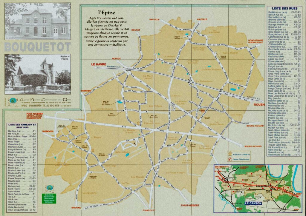 Une liste des rues et des hameaux accompagne le plan afin de faciliter la recherche et la localisation.